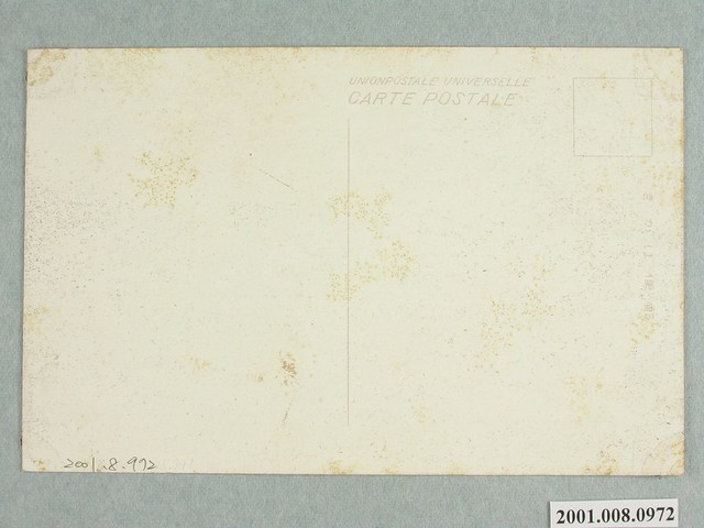 1. 本物件為以臺灣名勝為主題之明信片,其正面為奧北投黑白照片,影像為拍攝臺灣北投溫泉樟樹林風景,影像左上角部分標有三段文字,由上至下為「VIEW OF THE FAMOUS PLACE, HOT-SPRING HOKUTO」、「臺灣名勝(十二勝の一)北投溫泉」、「奧北投(樟樹林)」。背面為空白明信片橫式書寫面,以黃褐色單色印刷,右上角有一方框作為郵票黏貼處,右側有「郵便はがき」,上方偏右位置有「UNION POSTALE UNIVERSELLE」、「CARTE POSTALE」中間有一分隔線。