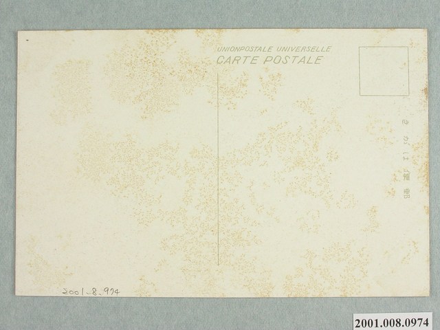 1. 本物件為以臺灣名勝為主題之明信片,其正面為北投溫泉黑白照片,影像下方為地熱區域之窪地,熱氣蒸騰情形,右上方有三段文字,由上至下為:「VIEW OF THE FAMOUS PLACE HOT-SPRING HOKUTO.」、「臺灣名勝(十二勝の一)北投溫泉」、「噴出の地獄谷附近にしてやまど、星の湯養氣閣旅館其の他名士の別莊俱樂部等多し」(地獄谷附近的大和、星之湯、養氣閣旅館及其他名人的別墅、俱樂部等)背面為空白明信片橫式書寫面,以黃褐色單色印刷,右上角有一方框作為郵票黏貼處,右側有「郵便はがき」,上方偏右位置有「UNION POSTALE UNIVERSELLE」、「CARTE POSTALE」中間有一分隔線。