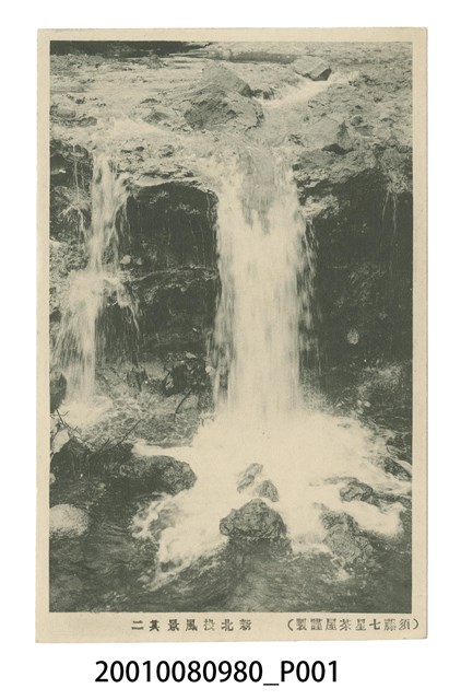 本物件為以新北投為主題之明信片,其正面為新北投風景黑白照片,影像下方標有兩段中文字,由右至左「須藤七星茶屋謹製」、「新北投風景其二」。背面為空白明信片橫式書寫面,以綠色單色印刷,右上角虛線方框為郵票黏貼處,右側標有「郵便はがき」,明信片右側上方位置標有「POST CARD」,中間有一分隔線。