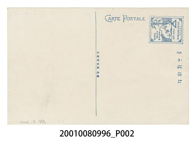 2.正面影像滿版印刷,上方印有說明文字「淡水港油車口、Tansui Harbour.」。背面則印有藍色文字「郵便はかき、CARTE POSTALE、臺北新高堂發行」,郵票黏貼方框設計為東京圖案印刷株式會社商標圖案,方框內繪有信鴿、竹葉與文字「TOKYO DESIGN PRINTING Co.、TRADE MARK、千鳥印、登錄商標、KANDA TOKYO」組合圖案。