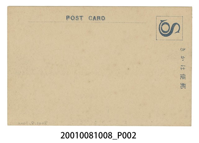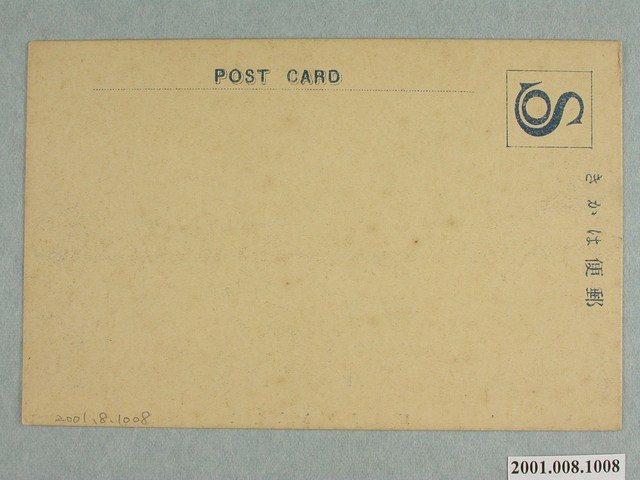 2.正面黑白影像全幅、四周留白邊,下方印有藍色說明文字「私立淡水中學全景」。背面則印有藍色文字「郵便はかき、POST CARD」,及郵票黏貼方框內有「S」商標圖案。