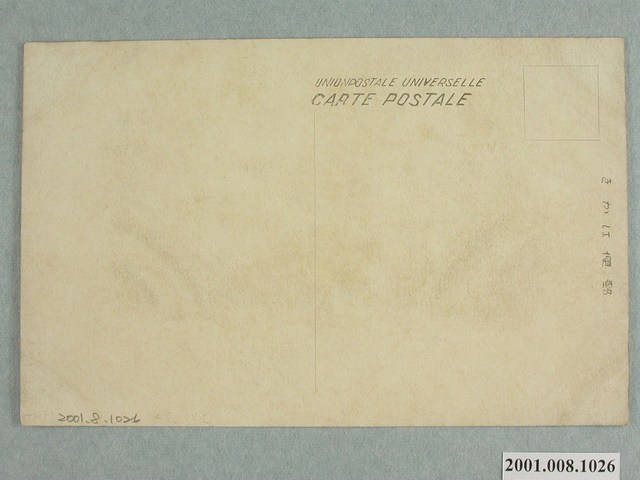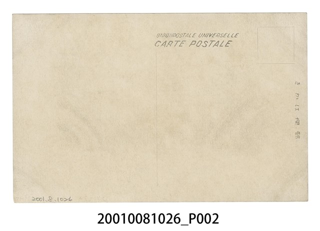 1. 本物件為以基隆金瓜石礦山公司為主題之明信片,其正面為金瓜石礦山公司建築外觀黑白照片,影像右下角以白色漢字註為「金瓜石礦山株式會社」,左下角白色字體無法辨識。背面為空白明信片橫式書寫面,以黑色單色印刷,右上角有一方框作為郵票黏貼處,右側有「郵便はがき」,上方偏右位置有「UNION POSTALE UNIVERSELLE」、「CARTE POSTALE」中間有一分隔線。