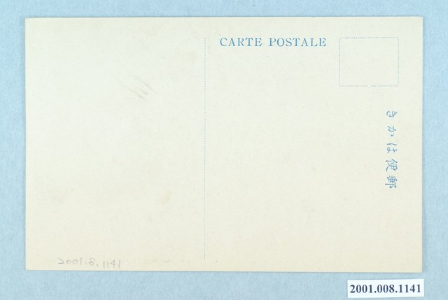 2.正面影像為黑白照片,下方印有藍色文字「新高山道路(其三)雲懸橋 中央新高山ノ遠望」,背面則印有藍色文字「郵便はかき、CARTE POSTALE」。