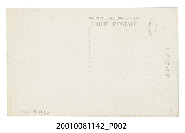 2.正面影像右上方印有黑色說明文字「能高主山ノ雄姿、〔臺中州國立公園〕、能高郡下」,背面印有灰色文字「郵便はがき、UNION POSTALE UNIVERSELLE、CARTE POSTALE」,郵票方框內則印有「UTSUNOMIYA」(宇都宮)與星星商標圖案。