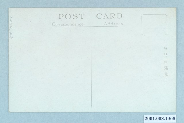 1. 本物件為以臺灣風物為主題之明信片,其正面為竹筏彩色照片,影像中有1艘竹筏在水面上划行,該竹筏以12支竹子為基底編製而成,上方站有2名戴著斗笠的男性,右方男性上身赤裸,下身穿著白色褲子,左方男性穿著白色衣褲,竹筏前後皆放置了兩根竹篙,竹筏中間的桅竿上升著白色的布帆;影像右上方標註「(臺灣の風物)竹筏」、「竹で作つたもので漁業や簡單な運搬に使用せられてゐる」(大意為:由竹子製成,便於運輸及漁業的小船)。背面為空白明信片橫式書寫面,以黑色單色印刷,右上角有一方框為郵票黏貼處,右側標有「郵便はがき」,上方以英文標註「POST CARD」,兩側分別寫有左「Correspondence」、右「Address」,中間位置有一道分隔線。2. 此類臺灣的竹筏,稱為「航海帆筏」,行駛於海上時,因無法以竹篙進行推進,以及為了防止海浪上筏,因此出現了4個構造:中國式蓬帆、圓筒、中插板,以及略為上彎的筏艏,而中央的圓筒除了用以儲放物品之外,亦可用來載運客人。
