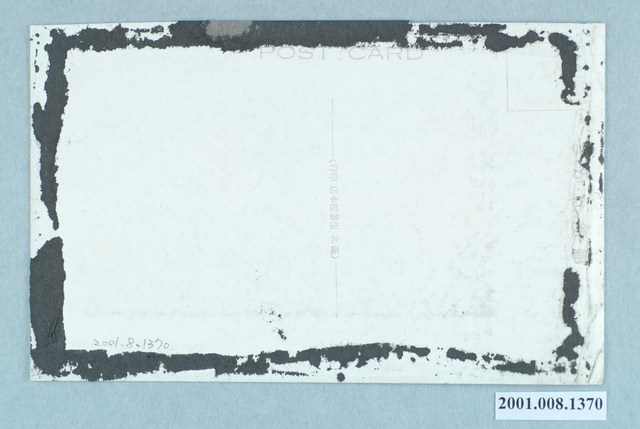 1. 本物件為以臺灣情調為主題之明信片,其正面為竹筏彩色照片,影像中有1艘竹筏航行於水面,橘色的布帆倚靠著較細的竹子,如百葉窗展開,竹筏前後兩端各有1名拿著竹篙的船夫,位於竹筏中間的木製圓筒內,有1名戴著帽子、身穿白色衣服的人坐在其中,影像右上方標註:「20.Teppai (A boat of a bumboo wraft), Formosa.」、「(臺灣情調)竹筏」、「丸竹を筏に組んで其の儘舟に用ゐるもの、臺灣南部の淺海に用ゐられます、漁用のもの可成遠くまで出漁します」(大意為:以一小舟由圓竹組成,主要在臺灣南部的淺海使用,若是漁業用的,則可航行至更遠的地方捕魚。)背面為空白明信片橫式書寫面,以黑色單色印刷,有部分毀損,右上角虛線方框為郵票黏貼處,上方標有「POST CARD」,中央有一條分隔線,並標有「臺北生蕃屋本店印行」。2. 此類臺灣的竹筏,稱為「航海帆筏」,行駛於海上時,因無法以竹篙進行推進,以及為了防止海浪上筏,因此出現了4個構造:中國式蓬帆、圓筒、中插板,以及略為上彎的筏艏,而中央的圓筒除了用以儲放物品之外,亦可用來載運客人。
