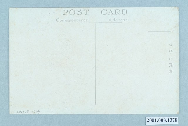 1. 本物件為以臺灣風物為主題之明信片,其正面為龍骨車彩色繪圖,繪圖中有兩名戴著斗笠的農人,趴在以板凳為底架起的竹竿上,其下踩著木製的踏板,後方為龍骨車,右側部分為綠油油的稻田,並坐著一名身穿紅色衣服的人,圖片左下角處標註:「(臺灣の風物)龍骨車」、「足で車を踏んで水を高い所に揚げるのである」(大意為:以腳踏水車的方式將水引至高處)。背面為空白明信片橫式書寫面,以黑色單色印刷,右上角方框為郵票黏貼處,右側標註「郵便はがき」,上方為「POST CARD」,其下方兩側左側為「Correspondence」,右側為「Address」。
