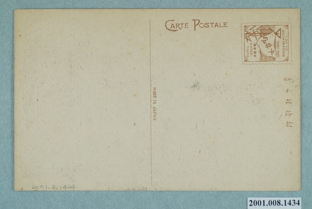 1.本物件為以鳳山亞公詞廟(曹公廟)及鳳山公館為主題之明信片,其正面為亞公詞廟和鳳山公館黑白照片,畫面中可見右者為亞公詞廟,左側為鳳山公館,下方有1段文字「臺灣鳳山街亞公詞廟及鳳山公館」,左下方有1段文字「福島エハガキ店發行」;背面為空白明信片直式書寫面,以棕色單色印刷,左上為郵票黏貼處,內有由上至下「TOKYO DESIGN PRINTING」、「 TRADE MARK」、「千鳥印」、「登陸商標」、「 KANDA TOKYO」字樣,上方有「郵便はがき」字樣,左上有「CARTE POSTALE」字樣,中央有「MADE IN JAPAN」字樣。2.曹公廟建於西元1860年,供奉對象為清代知縣曹謹,除開鑿曹公圳外,其對地方的治理也頗受好評,待其死後居民則為了感謝他,為他建祠,後升格為廟,日治時期曾經重新修建過。鳳山公館為日治時期高雄地區一些展覽及會議會選擇舉辦的場所,現已消失,原地址已變為中華電信。