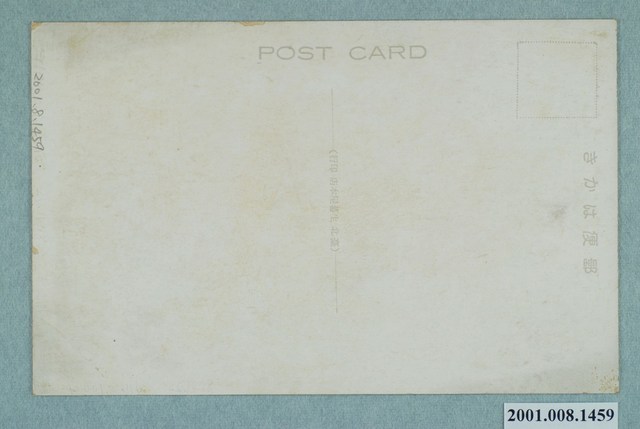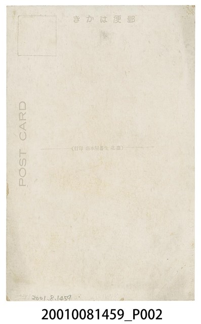 2. 明信片正面頂邊印刷文字:「1. An old savage of Taiyaru tribe, Formosa. (臺灣)タイヤル族老蕃。老えたれご頑健しかし何處となく柔和な所があゐ彼の武勇談こそ物凄いものばがあゐであらう」(中譯:臺灣泰雅族老人。雖然年紀大卻很健康,總覺得有柔和之處,正是如此他的勇武談才有著令人害怕的氣氛吧!)。背面印刷文字:「郵便はがき(臺北 生蕃屋本店 印行)POST CARD」,其餘空白。