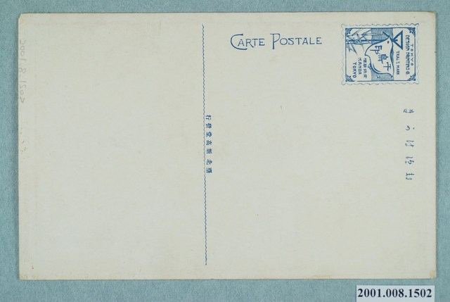 本件是以露營中的原住民為主題之明信片,圖片影像為5名正在生火野炊的布農族人,其中3名圍坐在以枯枝及乾草搭成的棚架旁,剩下2名則站在他們的後方面向拍攝者,背景為茂密的樹林。明信片正面底端印刷文字「臺灣丹大蕃の露營 BIVOUAC OF TANDAI SAVAGES IN FORMOSA.」。明信片背面為書寫面,左上角藍色方框為郵票黏貼處,方框內有竹葉加鳥型商標圖示,以及「TOKYO DESIGN PRINTING Co.,TRADE MARK,千⿃印,登錄商標,KANDA TOKYO」等字樣。背面中央有道分隔線標有「臺北 新高堂發行」,其餘空白處印刷文字「「郵便はかき CARTE POSTALE」。