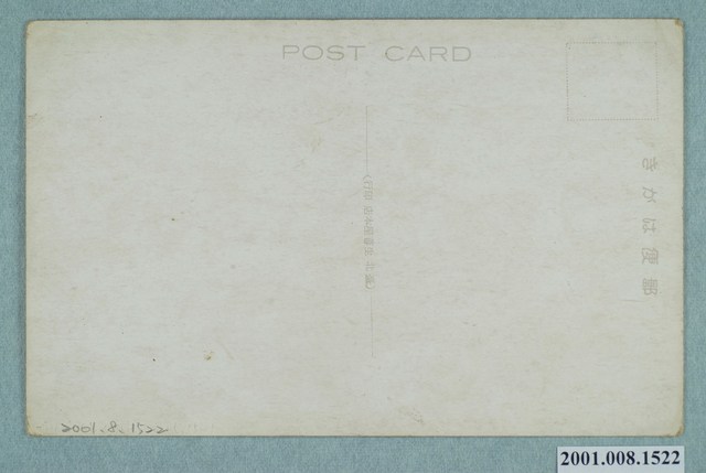 2. 明信片正面左上方印刷文字:「23 Cultivating rice field by Savages, Formosa(臺灣)蕃人の水田耕作 狩獵を事として居た彼等も今日は斯く立派な水田を耕作する様になりました」(中譯:臺灣原住民的水田耕作。原來以狩獵為生的他們,現在可以耕作出如此出色的水田)。背面印刷文字:「郵便はがき (臺北 生蕃屋本店 印行) POST CARD」,其餘空白。