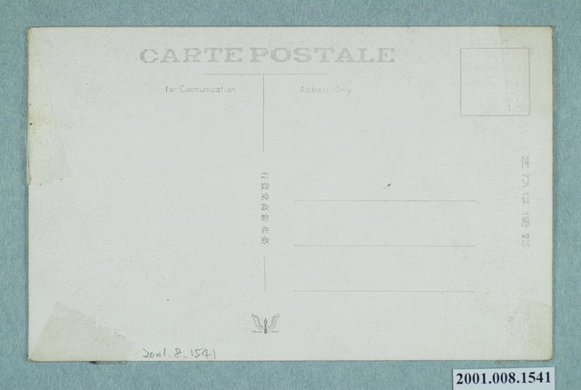 本件是以臺灣原住民為主題之明信片,其正面為2名泰雅族男子並排半身照。左圖年輕男子頭戴藤帽,嘴叼煙斗,身著胸兜與短上衣,右手持槍。右圖年長男子頭戴貝片頭帶,嘴叼煙斗,身著短袖上衣外披披肩,右手持槍。明信片正面底端印刷文字「臺灣ハガ社蕃人の頭目 CHIEFS OF FORMOSA SAVAGES AND HIS FAMILY (53)」。明信片背面為空白書寫面,右上角方框為郵票黏貼處,方框下方寫有「郵便はかき」。中央有道T型分隔線標有「臺北新高堂發行」,左右各印刷文字「for Communication Address Only」,上方印有「CARTE POSTALE」,下方留有鳥型商標,右側有三道平行線為地址書寫處。