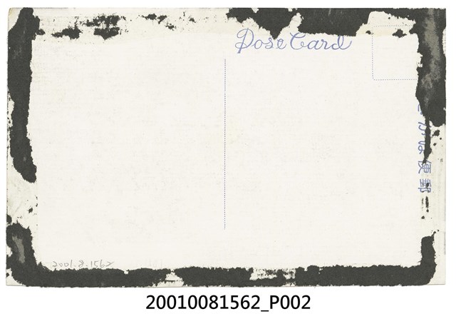 1. 本件是以屏東公園排灣族家屋為主題之黑白明信片,其正面影像為6名身著排灣族服飾的男女合照,背景是位於公園裡的家屋。依據建築屋簷下方的人頭紋及百步蛇紋雕刻,以及廣場中的人形石柱,研判應為仿照頭目家屋。明信片正面左下角印刷文字「(屏東)バイワン族生蕃と蕃屋 THE BARBARIAN-HOUSE AND BAIWAN TRIBE.(FORMOSA HEITOO)」。明信片背面為空白書寫面,因邊緣有不明黑體覆蓋致使部分文字消失。右上角方框為郵票書寫處,中央有道分隔線,其餘空白處印刷文字「郵便はがき POST CARD」。2. 屏東公園為日本時代所建造的公園,始建於明治35年(1902),是南台灣最早的公園綠地設施,位於今日的屏東市公園路上。第二次世界大戰之後,國民政府改其名為中山公園,直至2016年7月29日更回原名。