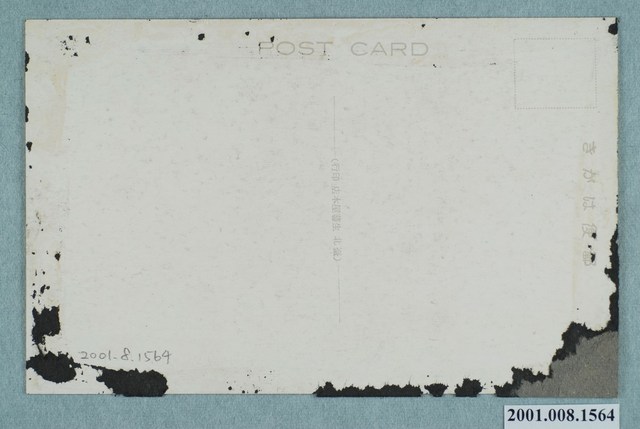 2. 明信片正面左上方印刷文字:「23 Cultivating rice field by Savages, Formosa(臺灣)蕃人の水田耕作 狩獵を事として居た彼等も今日は斯く立派な水田を耕作する様になりました」(中譯:臺灣原住民的水田耕作。原來以狩獵為生的他們,現在可以耕作出如此出色的水田)。背面印刷文字:「郵便はがき (臺北 生蕃屋本店 印行) POST CARD」,紙張邊緣有若干黑色墨漬,其餘空白。