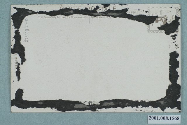 本件是以臺灣蘭嶼達悟族為主題之明信片,其正面為數名達悟族人的合照。前方中央站立3名手持長形武器的男子,男子前方地上蹲坐3名女子。明信片正面底端印刷文字「ヤミ族男女 Manners of the savages, Formosa.」。明信片背面為空白書寫面,因邊緣有不明黑體覆蓋致使部分文字消失。右上角方框為郵票黏貼處,方框內由上至下印刷「Place Postage 、TRADEMARK、P.S.C.L.、Made in Japan」以及K字型圖示。中央有道T型分隔線左右各標以文字「This Space may be used for Communication」以及「The Address Only to be Written Here」,分隔線上方印刷文字「CARTE POSTALE」以及「 PUBLISHED BY KATSUYATA PHOTO STUDIO 2-CHOME. AKASHIMACHI. TAIPEH」(中譯:臺北勝山寫真館發行)。
