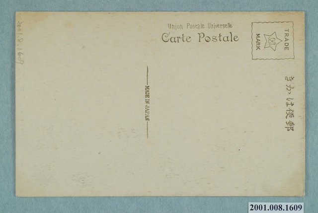 1.本物件為以楊桃為主題之明信片,正面有楊桃黑白照片,畫面中可見數顆楊桃果實結於枝條上,下方有2段文字,第1段「k.ono 24」,第2段「(臺灣果實)楊萄(ヨオト)」;背面為空白明信片直式書寫面,以黑色單色印刷,左上有郵票黏貼處,有商標圖案星星及「TRADE」、「MARK」字樣,上方有「郵便はかき」字樣,左側有「Union Postale Universelle」及「Carte Postale」2行字樣,中央有「MADE IN JAPAN」字樣。