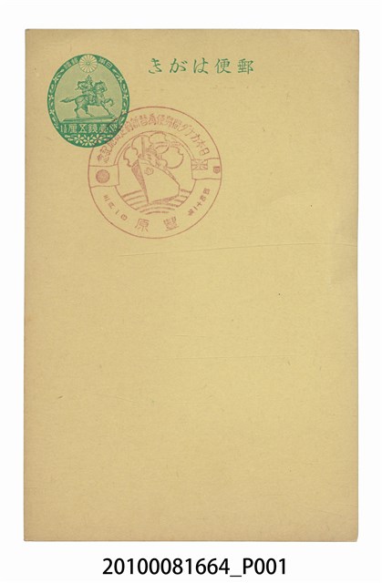 本物件為以日本與加拿大間郵政新約定實施紀念之豐原昭和十一年三月一日為主題之明信片,以綠色單色印刷,左上方印有1橢圓形圖樣,文字由上至下為「日本郵便」、「N.S壹錢五厘1½」;圖樣由上至下為菊花,穿著盔甲的騎馬武士,以及3朵櫻花;明信片上方有「郵便はがき」 ,中央偏左上位置蓋有1粉紅色圓形戳章,文字由上至下為「日本カナダ間郵便為替新約定實施記念」、「昭和十一年」、「豐原」、「三月一日」,戳章圖樣右側為西元1921年使用的加拿大國旗,左側為日本國旗,中間圖樣為一艘正在航行的輪船;背面為一片空白。