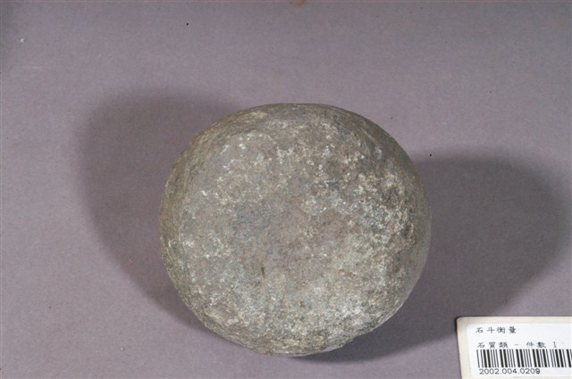 1.本物件為石製度量衡器,又稱石砣,類砝碼用途,上有洞可穿繩。