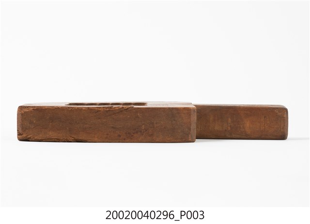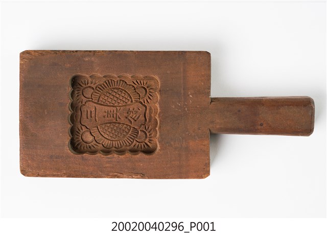 1.此印模上刻有一外圈由二十個圓弧狀構成的方形糕餅模,可用來製作糕或餅。方形糕餅模較常見於臺灣南部地區。模內刻有六朵菊花紋,中間刻有「三美珍」字樣,為店舖名,可見此物原屬糕餅店家所有。握柄方直,背面鑽有一小孔,為方便吊掛之用。印模邊角處有經久使用所造成的明顯磨損。2.此印模所製糕品為生命禮俗祭拜時所用。菊花又稱為「長壽花」,自古為重陽節應景花卉,具有長壽吉祥寓意,是臺灣民俗糕餅製作模具中常見的工藝圖案之一。