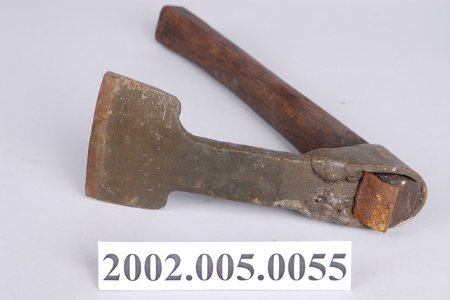 本文物為錛仔,又寫作扳仔,日本寫作錛,中國稱錛或錛子。主要是木工用來去除樹皮,將木料削平的工具。本件錛仔鐵件前端為平鑿形,刀面厚實,刀刃為平口,刀面與柄平行。後端收為D字型鐵箍,使木柄直接穿過鐵件,並塞以鐵片固定。臺灣傳統大木作、細木作匠師,以錛仔作為製作粗胚時削去樹皮或木料的工具。