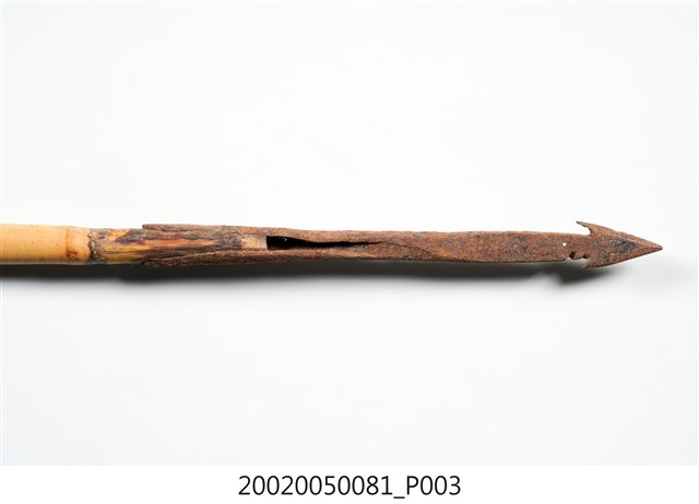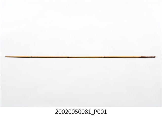 本物件為竹箭,竹製材質。由物件外觀可見一根細竹,竹子外觀寬細大致一致,其中一端以尖銳金屬作為箭頭。