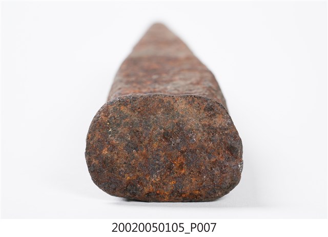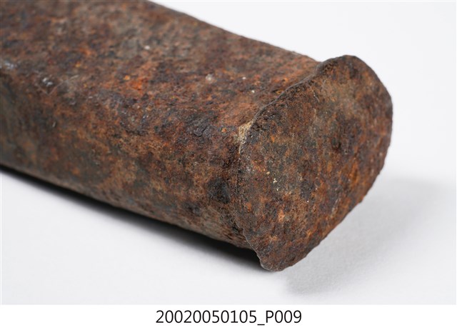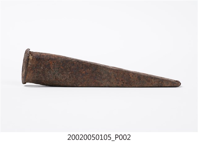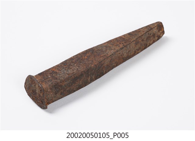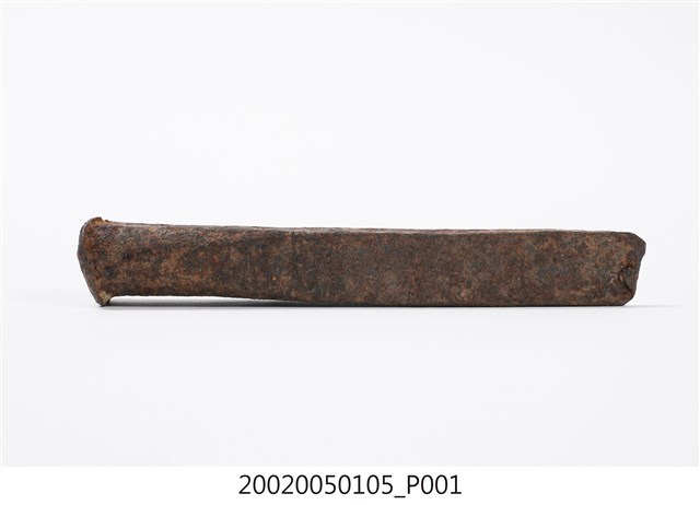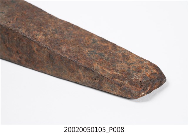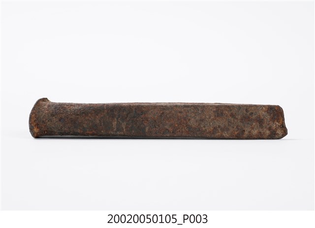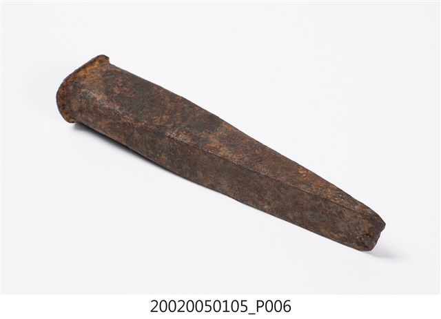 本文物為鑿,為打石工具,打石匠師使用時通常與鎚配合作業。本件鑿後端為平面與鎚接觸,前端原為平口或尖頭,為接觸石材的面。因前端已損壞,無法確定屬平口或尖頭。