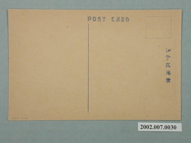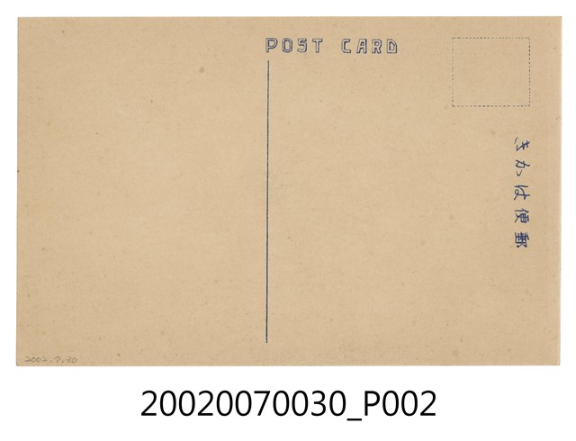 1.本物件為以臺灣總督府為景之明信片。正面為臺灣總督府之黑白照片。明信片是從遠處拍攝,大致可見總督府高塔及右側立面。正面右下方載有「臺灣總督府(臺北州)」字樣,為今臺北市博愛特區之中華民國總統府。背面為明信片書寫面,右上方有郵票黏貼處,右側有以漢字、平假名書寫之「郵便はがき」,正上方印有「POST CARD」字樣。2.臺灣總督府設立於西元1895年,為日本殖民政府在臺灣的最高統治機關,圖中所見的臺灣總督府廳舍啟用於西元1919年,目前為中華民國總督府並為文化部所指定的國定古蹟。臺灣總督府由長野宇平治、森山松之助設計,於大正8年(1919)落成,主體平面呈「日」字形,為五層樓建築物,立面充滿文藝復興時期特色。