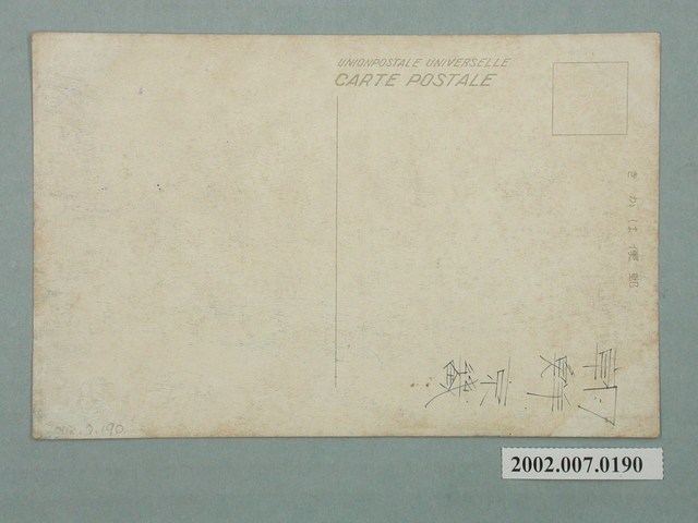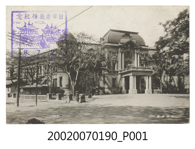 1.本物件為以臺南州廳為景之明信片。正面為臺南州廳之黑白照片。明信片可見該建築採用馬薩式屋頂,亦有老虎窗及牛眼窗。明信片中央處可隱約看見被樹木擋住部分的衛塔。建築物四周為道路,道路上有樹木及電線杆。明信片正面左上方蓋有紫色印章,印章圖案為臺南赤崁樓,載有「臺南赤崁樓紀念」及日期「8.7.2」之字樣。明信片正面右下方載有「臺南州廳」、「Y203」之字樣。背面為明信片書寫面,右上方有郵票黏貼處,明信片右側有以漢字、平假名書寫之「郵便はがき」,正上方印有「UNIONPOSTALE UNIVERSELLE CARTE POSTALE」之字樣。右下方有手寫字跡寫著「朝鮮京畿」。2.臺南州廳係由日籍建築師森山松之助設計並於西元1916年落成使用,為磚造承重牆、鋼梁、及鋼筋混凝土二層樓建築,屋頂為銅瓦馬薩式屋頂,正門立面左右皆有一座圓柱形衛塔,位於日治時期大正公園(又名民生綠園、湯德章紀念公園)的南側。當時的臺南州包含現今臺南、嘉義、雲林等縣市,含有新豐、新化、曾文、北門、新營、嘉義、斗六、虎尾、北港、東石等十郡,臺南州廳以知事官房、內務部、警務部三個系統統籌臺南州的各種事務。戰後曾做為臺南市政府使用,現為國立臺灣文學館,為國定古蹟之一。