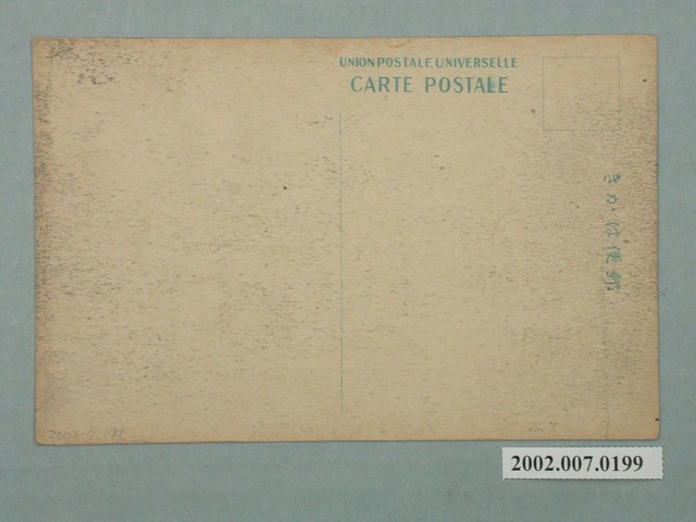 1.本物件為以臺南知事官邸為景之明信片。正面為臺南知事官邸之黑白照片。明信片可見臺南知事官邸的正門及圍牆。正門向內看為為臺南知事官邸主建築,但被前方的植物所擋住只能看見部分。圍牆前則皆為樹木。明信片正面下方載有「台南知事官邸」、「Y24.」之字樣。背面為明信片書寫面,右上方有郵票黏貼處。明信片右側有以漢字、平假名書寫之「郵便はがき」,上方印有「UNION POSTALE UNIVERSELLE CARTE POSTALE」之字樣。2.臺南知事官邸建於西元1900年,位於今臺南市東區衛民街1號,又稱為原臺南縣知事官邸,現為臺南市之市定古蹟。為一兩層樓之建築,為典型的殖民樣式風格建築,平時做為臺南知事之官邸使用,而當日本皇族或貴賓來訪時則為做接待貴賓的寓所,據統計截至1941年止臺南知事官邸曾接待近20位的日本皇族,其中最有名即是1923年日本裕仁皇太子。