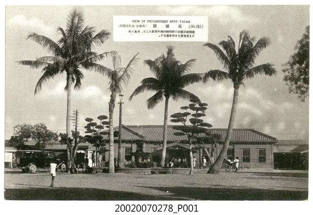 1.本物件為以高雄車站為景之明信片。該明信片為黑白照片。照片可見高雄車站為一層樓的建築,前方種有椰子樹,車站門口處有許多人,也有人牽著自行車、人力車。左側有車輛,可能是巴士之類的車。照片正上方載有「VIEW OF PICTURESQUE SPOT TAKAO.」、「(No.101)」、「高雄駅(高雄市山形屋發行)」、「臺灣縱貫鐵道の終點潮州線の茶點にして、本島に於ける最重要なる停車場なり。」之字樣。(日文大意:為臺灣縱貫鐵路的終點,潮州線的起點,是本島最重要的停車場)背面為明信片書寫面,右上方有郵票黏貼處。右側有以漢字、平假名書寫之「郵便はがき」,正上方印有「POST CARD」之字樣。