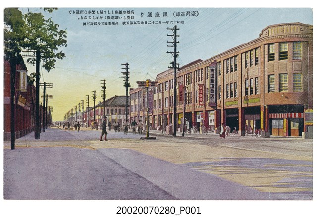 1.本物件為以高雄市街景為景之明信片。該明信片為彩色圖畫。照片可見右側為一整排的建築,有各式商店的招牌。前方為寬敞的道路,路上有許多行人。照片正上方載有「(臺灣高雄)銀座通り」、「高雄の銀座として最も繁華な街通りで目覚しい躍進振りを示してみる。」、「昭和十六年一月二十二日地帶寫真第五號 高雄要塞司令部許可濟」之字樣。(日文大意:此處為高雄最繁華的街道,可說是高雄的銀座。如此繁華的街道也是進步的象徵。)背面為明信片書寫面,右上方有郵票黏貼處。右側有以漢字、平假名書寫之「郵便はがき」,正上方印有「POST CARD」之字樣,其下方有一批馬的圖案,圖案右方標有「Address」,左方則標有「Correspondence」之字樣。