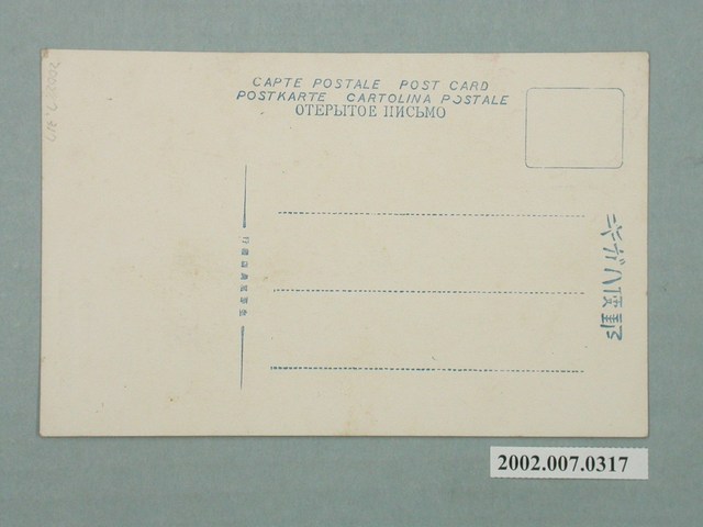 1.本物件以臺灣水果為主題,彩色樣式。正面為荔枝之圖像。左下方以漢字書寫「(台灣果物)荔枝」,以英文字母書寫「Nephelium Litchi,Camb」。背面右上角為郵票黏貼處,右側有以漢字、平假名書寫之「郵便はがき」,上方以英文字母書寫「CARTE POSTALE」、「Postkarte-Cartolina Postale-PostCard」、「OTEPLITOE IINCBMO」,中間以漢字書寫「生蕃屋商店發行」。