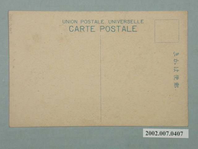 1.本物件以臺灣植物為主題,黑白樣式。正面為兩棵棕櫚樹的特寫,兩樹結實纍纍。下方以漢字書寫「椰子ノ實」。背面右上角為郵票黏貼處,右側有以漢字、平假名書寫之「郵便はがき」,上方以英文字母書寫「CARTE POSTALE」、「UNION POSTALE. UNIVERSELLE」。2.日治時期,日人透過官方出版品、明信片,將臺灣形象塑造成風光明媚、熱帶地區的印象,椰子樹則在當時成為臺灣為熱帶南國的代表景觀植物之一,北至臺北南至屏東,各地景點皆可見椰子樹的蹤影。