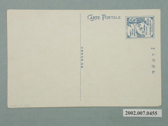 2.正面影像下方印有紅色文字「77 MT NIITAKA. 臺灣新高山」,背面則印有藍色文字「郵便はかき、CARTE POSTALE、臺北新高堂發行」,郵票黏貼方框設計為印刷公司TOKYO DESIGN PRINTING CO.商標圖案,方框內繪有信鴿、竹葉與文字「TOKYO DESIGN PRINTING Co.,千鳥印,登錄商標,TRADE MARK,KANDA TOKYO」組合圖案。