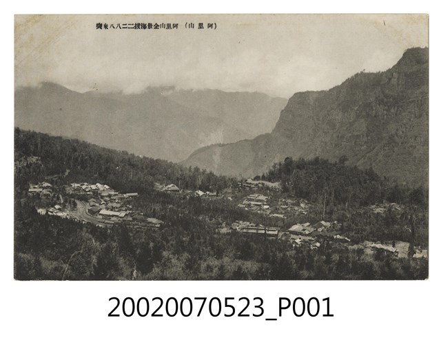 1.單色印刷明信片,影像內容為阿里山林業聚落全景。 2.正面影像滿版、黑白印刷,上方印有黑色說明文字「(阿里山)阿里山全景海拔二二八八米突」,背面印有文字「郵便はかき、CARTE POSTALE、UNION POSTALE UNIVERSELLE」,及郵票黏貼方框內有「Made in ShiRoKiTa」文字。