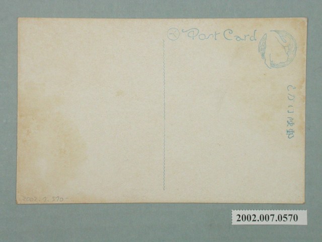 2.正面影像滿版印刷,上方印有說明文字「日月潭より水社大山を望む、VIEW OF MT.OYAMA SUISHA, AS SEEN FROM LAKE JITSUGETSUTAN.(柯保安發行)」。背面印有藍色文字「郵便はかき、Post Card」,Post Card字前有圓圏內有「Y」字的組合圖案、後有天鵝的商標圖案。