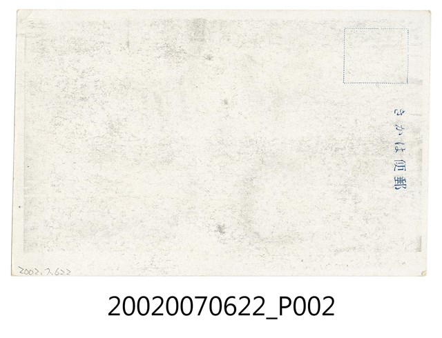 1.本物件以產業試驗為主題,黑白樣式。正面為東京帝國大學農業部位於臺灣溪頭設置的演習林,該處以竹子互相編織成為屋頂。下方書寫「樟腦製造試驗」、「東京帝國大學農學部臺灣演習林、溪頭冷却裝置 後方桶式、中央土佐式、前方三浦改良式(海拔高三、六OO尺)」。背面右上角為郵票黏貼處,右側有「郵便はがき」。