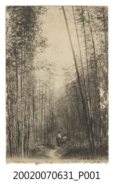1.本物件為以竹林為主題之明信片,正面有竹林黑白照片,畫面中可見1山間小徑,兩旁皆為茂密之竹林,而小徑上有2人正在行走,下方有文字,但因已被撕損,僅可辨認部分文字[不許複製];背面為空白明信片直式書寫面,以黑色單色印刷,左上為郵票黏貼處,上方有「郵便はかき」字樣,左側有「UNION POSTALE UNIVERSELLE」、「CARTE POSTALE」2行字樣。