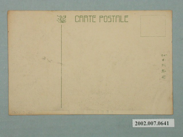 1.本物件為以臺北苗圃與林業試驗場為主題之明信片,正面有臺北苗圃與林業試驗場黑白照片,畫面中可見位於池畔,畔旁有許多樹木生長,下方有1段文字「臺北苗圃ト林業試驗場」;背面為空白明信片直式書寫面,以深綠色單色印刷,左上為郵票黏貼處,上方有「郵便はがき」字樣,左側有1天馬圖案及「CARTE POSTALE」字樣。
