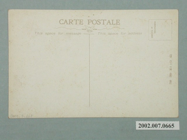 2.正面影像滿版印刷,左上方印有黑色說明文字:「(臺灣)阿里山の櫻花、三月下旬より四月上旬に亘り數百本の吉野櫻は紅白爛漫と觀客を魅了する。」(譯:從3月下旬持續到4月上旬,數百棵的吉野櫻盛開紅白色花朵,吸引觀光客。)背面印刷有「郵便はがき、CARTE POSTALE」等字,通信欄與地址欄分隔線上有「TAISHO TRADE MARK」信鴿商標圖案,郵票張貼處印有「MANUFACTURE BY TAISHO」。