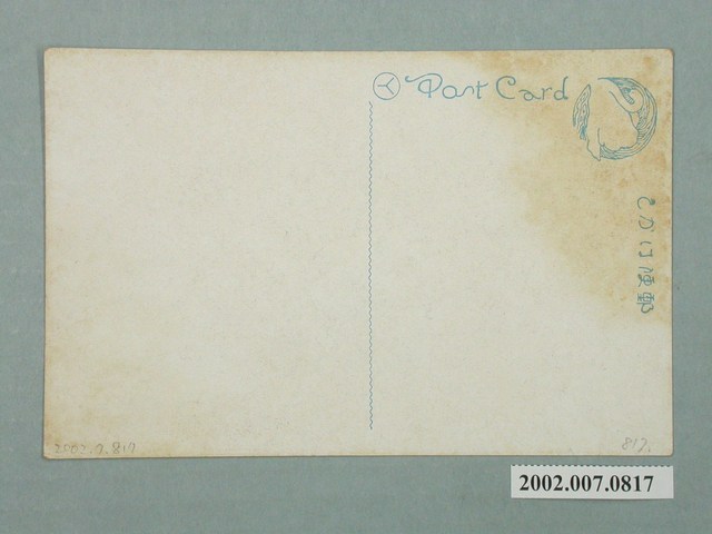2.正面影像滿版印刷,上方印有說明文字「日月潭化蕃の獨木舟(埔里柯保安商會發行)、SAVAGE'S BOATS AT THE LAKE NICHIGETSUTAN. 」。背面印有藍色文字「郵便はかき、Post Card」,Post Card字前有圓圏內有「Y」字的組合圖案、後有天鵝的商標圖案。