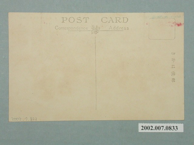 1.本物件為以臺灣原住民為主題之明信片,其正面為原住民跳舞之彩色繪圖,畫面中可見原住民手牽著手,圍成一圈,頭飾為羽毛,身穿以紅、黑色為主的傳統服裝,遠景為一棟黑屋瓦房子,隱約可見日本國旗,明信片右上方有「(臺灣の蕃地風習)生蕃の踊り」字樣;背面為空白明信片橫式書寫面,以灰色單色印刷,右上方有郵票黏貼處,右側有「郵便はかき」,正上方則有「POST CARD」字樣以及「CORRESPONDENCE」、「ADDRESS」。2.臺灣原住民屬南島語族,多分布於臺灣東部地區,在漢人開墾及日治時期的「理番政策」下,其生活空間不斷被壓縮,甚至是削弱文化特色,時至臺灣光復後原先以九族劃分,現今已增至十六族。