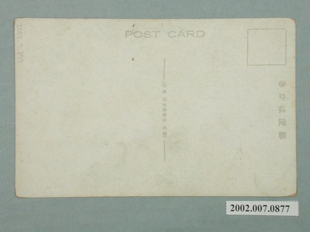 1.本物件為以范謝將軍為主題之明信片,正面為范謝將軍彩色圖像,畫面中可見穿扮成范謝將軍之人正與其餘民眾合照,下方有3段文字,第1段「19 Dolls of Famous Generals, Formosa.」,第2段「(臺灣情調)范將軍,謝將軍」,第3段「祭典の行列に出る大人形,本島人の崇拜する神樣です賑かな囃につれて眼の玉と下アゴを動かしながら兩手を振つて步く姿,臺灣以外で見られません」,大意為:祭典時出陣的大型人形裝扮,為本島人的信仰,其眼珠與兩手皆可活動,除了臺灣以外其他地方看不到;背面為空白明信片直式書寫面,以黑色單色印刷,左上為郵票黏貼處,上方有「郵便はかき」字樣,左側有「POST CARD」字樣,中央有「臺北生蕃屋本店發行」字樣。2.范謝將軍即為俗稱的七爺八爺,為有名的鬼差,七爺身材高挑瘦長,臉為白面,八爺則體態矮胖,臉為黑面,專門追緝鬼魂,而屬於福建地區的神祇范謝將軍與黑白無常,究竟是否為相同神明,至今仍有爭論。