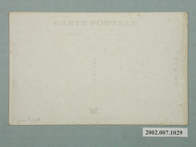 1.本物件為以始政四十周年記念臺灣博覽會,第二會場電影院與演藝館為主題之明信片,正面有2張黑白照片,右方照片為電影院,畫面中可見其館場部份樣貌,其形式有點類似於今日之電影院,有些許民眾於旁街道走動,下方有1段文字「(始政四十周年紀念臺灣博覽會)第二會場映画館」,上方有1段文字「THE GRAND SIGHT OF FORMOSA MEMORIAL EXHIBITION, TAIHOKU.」,上方有1藍色圓形戳印,上有建物與山圖案,由上至下有「始政四十周年記念臺灣博覽會」、「昭和十年十月十日至十一月二十八日」2段字樣,左方照片為演藝館,畫面中可見其建築正面樣貌,建物上有「演藝館」字樣,前有1小圓環,小圓環內有雕像,照片左側有大群民眾正在行走,下方有1段文字「第二會場演藝館」;背面為空白明信片橫式書寫面,以黑色單色印刷,右上處為郵票黏貼處,右側有「郵便はかき」字樣,下方有1鳥圖案,上方有「CARTE POSTALE」及2行字樣,由左至右為「For Communication」、「Address Only」,中央有「臺北新高堂發行」字樣。2.始政四十年紀念臺灣博覽會為西元1935年10月至11月以臺北為主舉辦的博覽會,分為4個會場,第一會場於臺北公會堂附近,第二會場於今二二八公園,第三會場於迪化街附近,第四會場於陽明山,而各地政府也各自舉辦小規模的展覽和活動。電影館位於第二會場,為提供一些單位或團體播放其準備之影片,總入場人數超過20萬人。演藝館位於第二會場,為進行舞蹈歌唱表演之場館,其中蓬萊舞的11首表演歌單皆以臺灣意象下去形造。