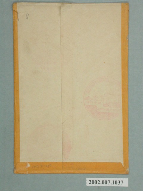 本物件為臺灣博覽會明信片封套,整體為黃底白色花紋。正面以漢字書寫「昭和十年十月十日始政四十週年記念」、「臺灣博覽會繪葉書」,並標註「臺北赤岡商會發行」。背面主要為白色封底,周圍為黃色。