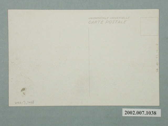 1.本物件以臺灣博覽會為主題,黑白樣式。正面為國防館之正面側拍圖,牆面以迷彩圖示裝飾,建築物上方插以旗子。背面右上角為郵票黏貼處,右側有以漢字、平假名書寫之「郵便はがき」,上方以英文字母書寫「CARTE POSTALE」、「UNION POSTALE. UNIVERSELLE」。2.至十九世紀後期,總督府將現代化的展覽觀念引進臺灣。西元1915年,博覽會第一次配合始政紀念日舉行。西元1935年,總督府擴大舉辦「始政四十週年紀念臺灣博覽會」。主要會場設置於臺北,全臺各地設置分館、分場。國防館位於第二會場內,展示主題為日本國內海陸空三軍的軍事設備,並宣傳現代化的軍事國防思想。