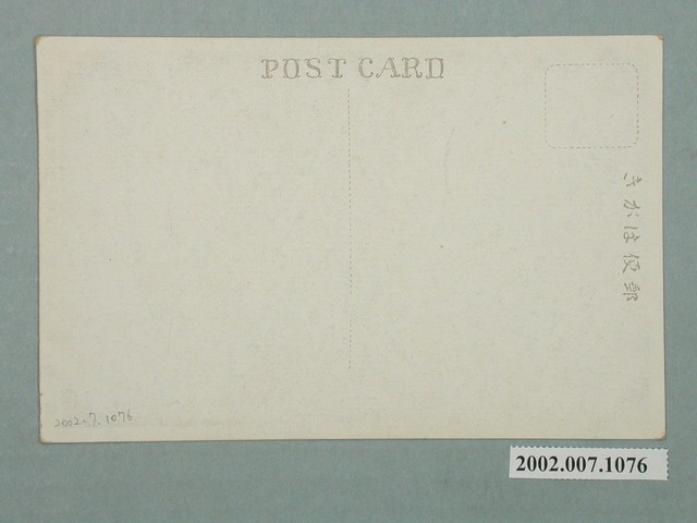 1. 本物件為以第一會場府縣館為主題之明信片,其正面為府縣館黑白照片,影像中建築物形式如雙十,以方形結構為主,建築物上方有兩座片狀的長方形塔,各插有一面日本國旗,其展覽館前方種有4棵樹的,影像右上方位置蓋有一紫色的圓形戳章,上方寫有「始政四十周年記念台湾博覽會」、「昭和十年自十月十日至十一月廿八日」、「臺北」,並有南方館建築、棕櫚科植物以及溫泉符號的圖樣,影像下方標註由右至左「(始政四十周年記念臺灣博覽會)」、「第一會場」、「府縣館」。背面為空白明信片橫式書寫面,以黑色單色印刷,右上方框為郵票黏貼處,右側有「郵便はがき」、上方有「POST CARD」,中間有一條分隔線。2. 至十九世紀後期,總督府將現代化的展覽觀念引進臺灣。西元1915年,博覽會第一次配合始政紀念日舉行。西元1935年,總督府擴大舉辦「始政四十週年紀念臺灣博覽會」。主要會場設置於臺北,全臺各地設置分館、分場。府縣館位於第一會場,展示主題為日本內地各府縣的出品。日本內地各縣市參與之踴躍,當時日本共3府43縣裡,僅有青森、山形、群馬等8縣因遇水患無法前來。