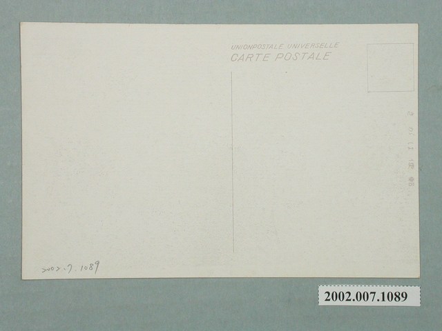1. 本物件為以夜景為主題,其正面為陸橋夜景黑白照片,影像為夜晚拍攝的臺灣博覽會陸橋,其建築輪廓樑面部分以圓形小燈泡為裝飾,周邊種有疑似棕櫚科植物,下方有手寫四個字,可辨識可能為「灣?夜景」。背面為空白明信片橫式書寫面,以黃褐色單色印刷,右上方框為郵票黏貼處,右側為「郵便はがき」,上方為「UNION POSTALE UNIVERSELLE」、「CARTE POSTALE」。2. 始政四十年紀念臺灣博覽會為西元1935年10月至11月共50日的博覽會,舉辦地點以臺北為主,為宣傳其統治的政績,及臺灣各項政策的成果,主要分為4個會場,第一會場於臺北公會堂附近,第二會場於今二二八公園,第三會場於迪化街附近,第四會場於陽明山,而各地政府也各自舉辦小規模的展覽和活動。第一會場陸橋是為避免行人穿越道路所設計,位在會場入口處,連接公會堂至憲兵隊,其約橫設於衡陽路、寶慶路之間,規模大且造型華麗。