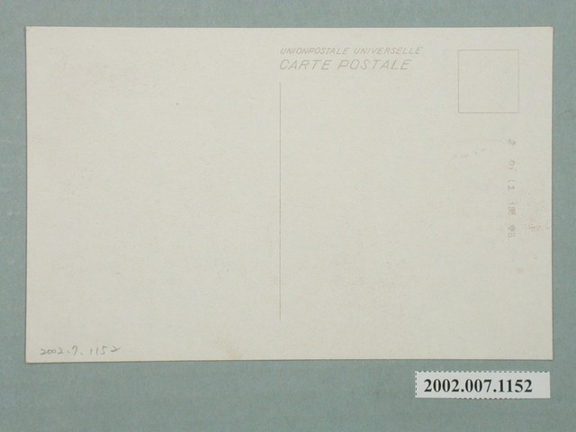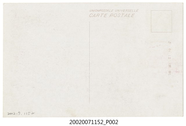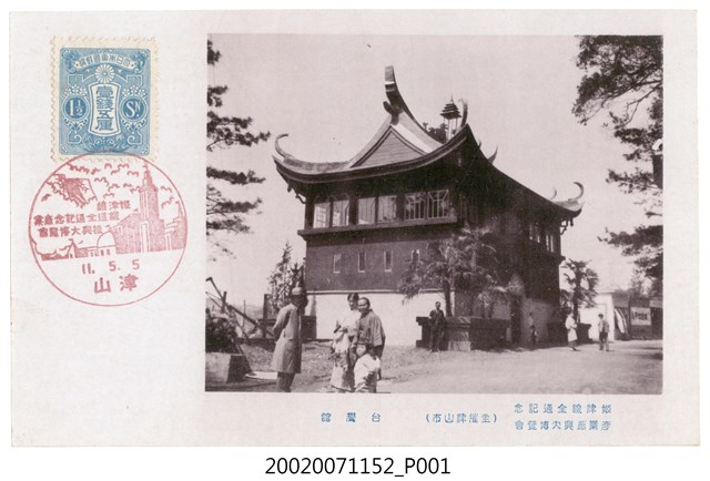 1. 本物件為以姬津線全通紀念產業振興博覽會臺灣館為主題之明信片,其正面為臺灣館黑白照片,影像位於明信片右方位置,為1棟中式3層樓獨棟建築,周邊種有棕櫚科植物,左側有4名穿著和服及西式外衣的行人,影像下方標註「姬津線全通紀念產業振興博覽會 」、「(主催津山市)」、「台灣舘」,左上方貼有1枚藍色郵票,上寫有「壹錢五厘」,郵票下方蓋有紅色圓形戳章,其上文字為「姬津線鐵道全通記念產業振興大博覽會」、「11.5.5.」(昭和11年5月5日)、「津山」。背面為空白明信片橫式書寫面,以灰色單色印刷,右上方框為郵票黏貼處,右側有「郵便はがき」,上方偏右有「UNIONPOSTALE UNIVERSELLE」、「CARTE POSTALE」,中間有一分隔線。