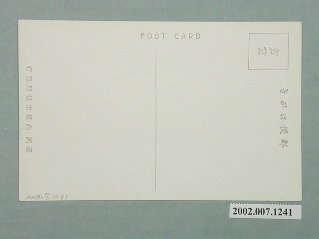 2.小澤秋成(1886-1954)於昭和8(1933)年受高雄市役所委託,繪畫30餘幅高雄相關的風景油畫,用以宣傳高雄的建設與城市街景,其中由高雄市役所選出部分油畫、發行為風景明信片,此張明信片描寫坐在高雄港碼頭棧橋上的釣客,靜靜地遙望高雄港內大小船隻來往的熱鬧景色。